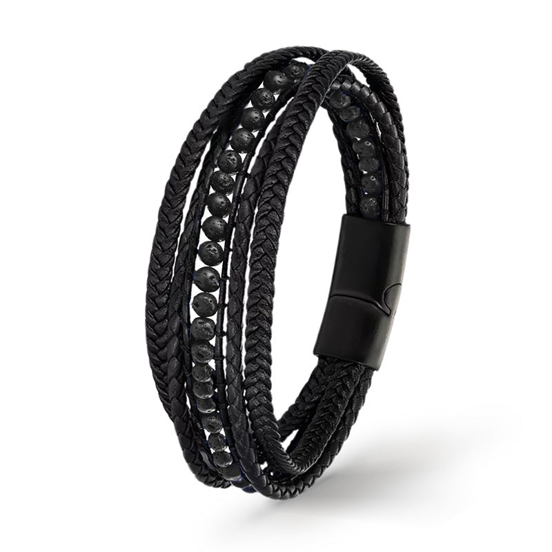 Die natürliche Schönheit der Lava Steine harmoniert perfekt mit der luxuriösen, geflochtenen Lederästhetik. Dieses Armband ist sowohl für den täglichen Gebrauch als auch für besondere Anlässe geeignet. Es sitzt bequem am Handgelenk und ist gleichzeitig ein starkes stilistisches Statement.